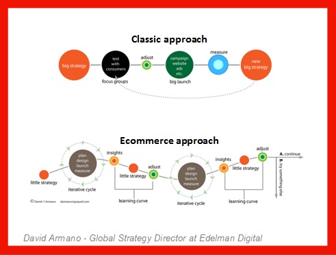 Тогда как в интернете работает другой подход, когда все тестируется, в т.ч. определенные гипотезы, что позволяет оперативно менять что-то на сайте или в самих коммуникациях.