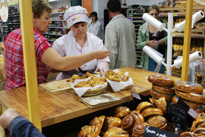 Точно так же поступают с хлебобулочными изделиями собственного производства (порядка 30 артикулов). Каждый вечер весь непроданный товар снимается с полок, и в 5 утра на них поступает новая партия.