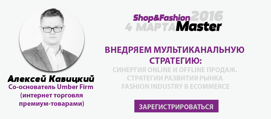 Как эффективно совмещать онлайн и оффлайн-продажи? А также узнать о стратегиях развития рынка Fashion industry в eCommerce? Об этом в своем докладе расскажет Алексей Кавицкий, со-основатель Umber Firm (интернет торговля премиум-товарами)