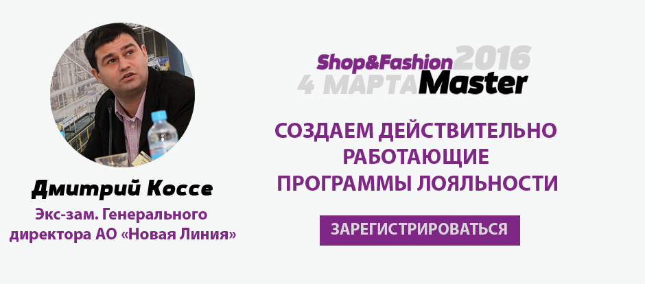 Дмитрий Коссе, экс-зам. генерального директора АО «Новая Линия», в мастер-классе «Создаем действительно работающие программы лояльности» раскроет такие важные вопросы, как: лояльность ритейлера и покупателя; CRM как стратегия ритейла и как эффективная система управления программой лояльности; эффективное сегментирование покупателей; управление взаимоотношениями с покупателями. Дмитрий имеет более 15 лет опыта работы в управлении ритейлом. Разрабатывал концепцию, программы лояльности для сетей магазинов одежды и обуви BEBE, KANZLER в РФ, Казахстане, Белоруссии. Лучший Эксперт ежегодного Национального проекта среди сетей и поставщиков DIY и Home Improvement «Non-FoodMaster» (с 2011 года).