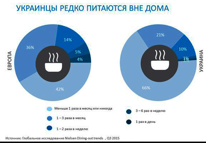 Также в исследовании говорится о том, что украинцы, как и европейцы в целом, редко питаются вне дома.