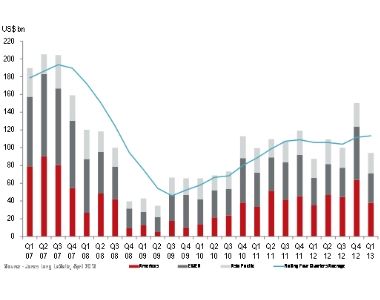 В І-м кв. 2013 года глобальный объем инвестиций вырос в среднем на 8% и достиг 94 млрд. долл.
