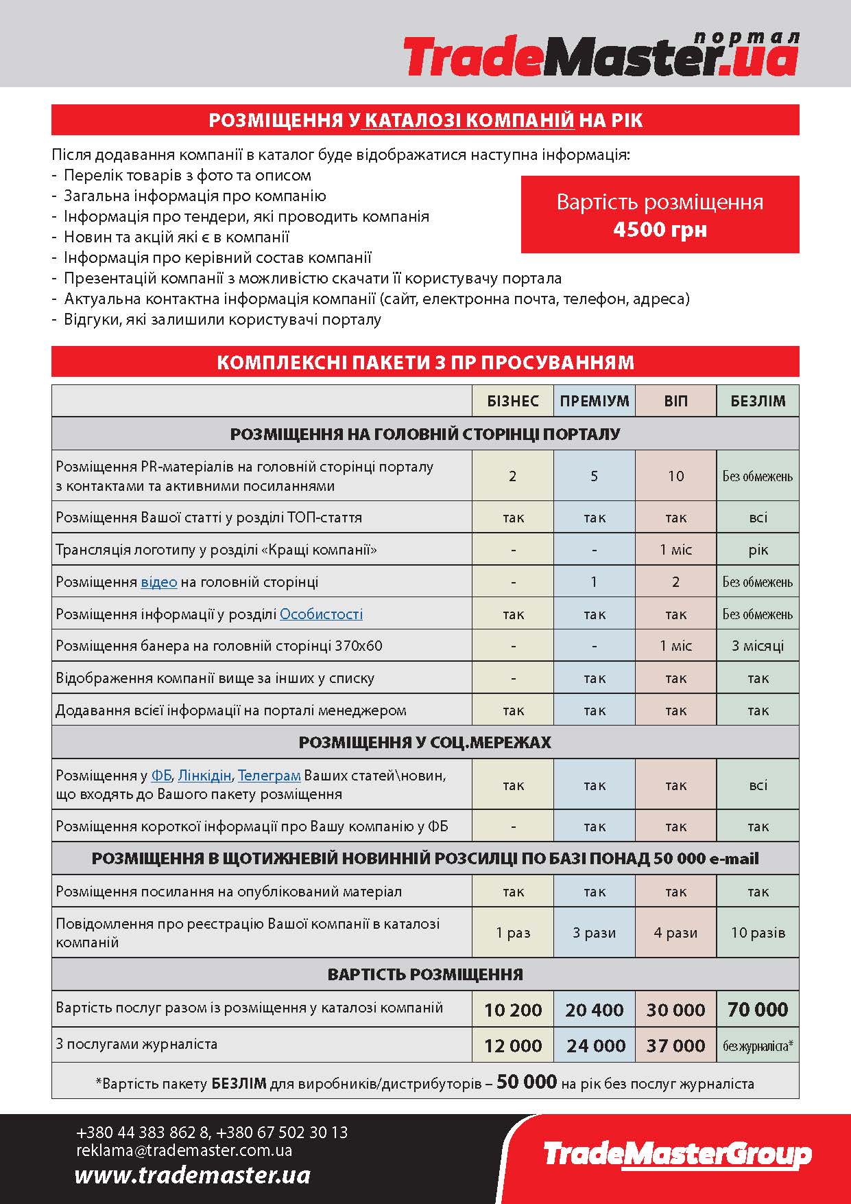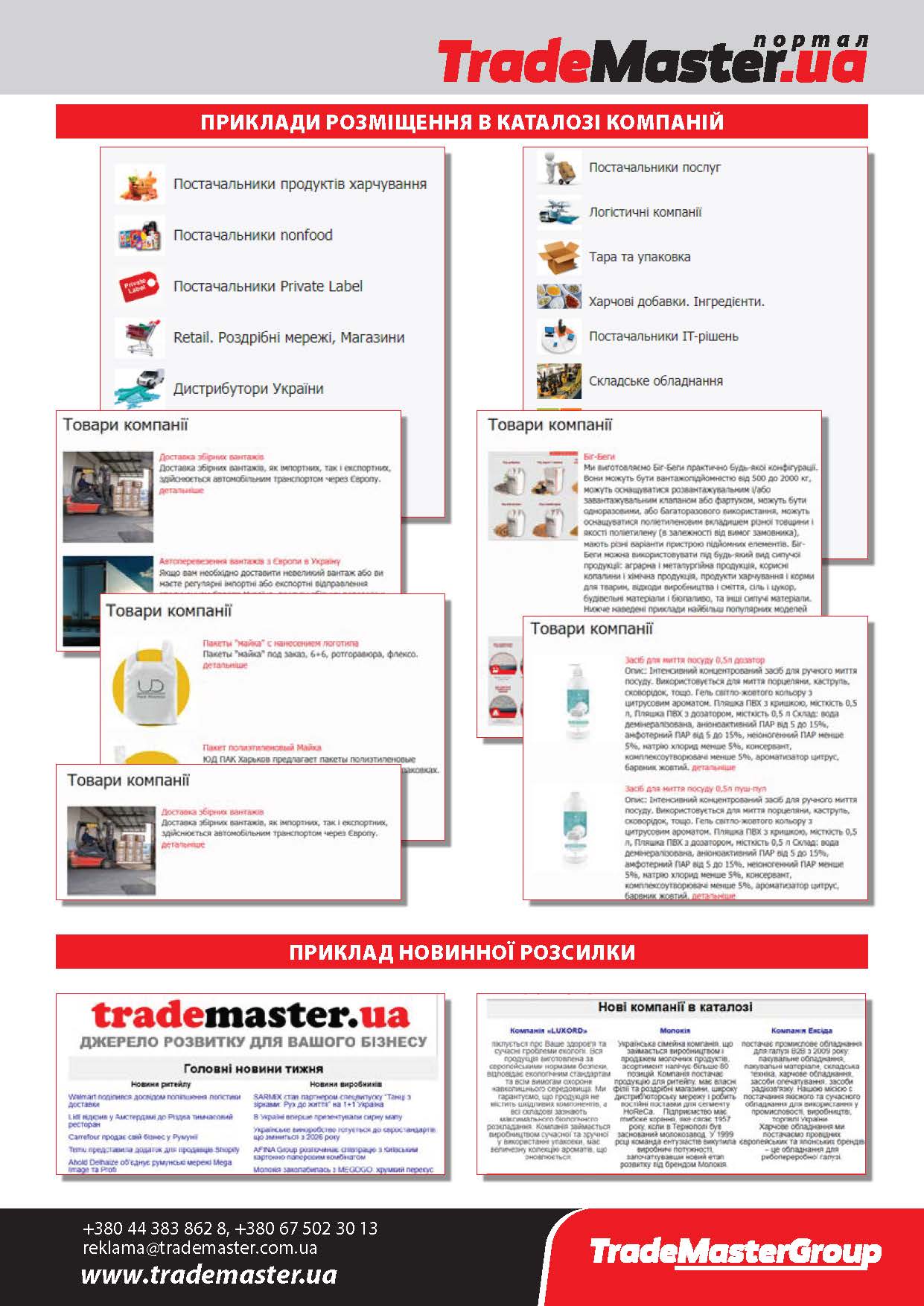 Розміщення вашої компанії в каталозі компаній https://trademaster.ua/catalog у відповідному розділі.