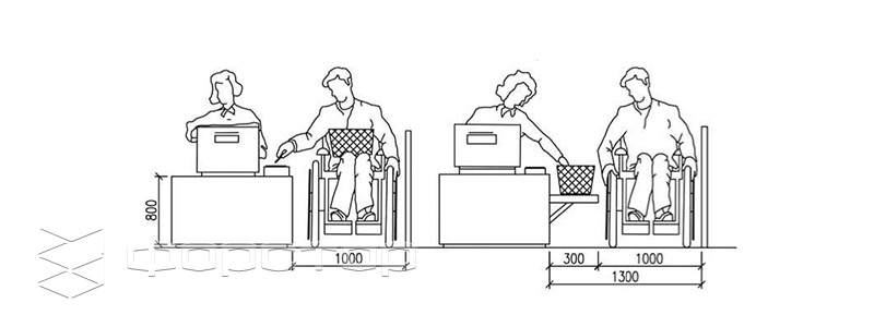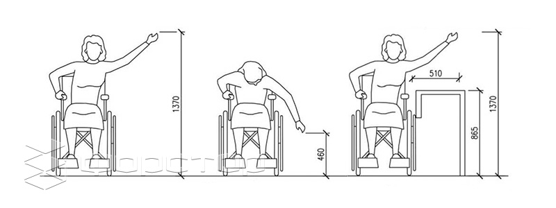 Продукты должны быть расположены так, чтобы человек в инвалидной коляске мог без труда до них дотянуться. Требования по размерам: