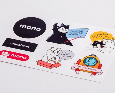 - это современно. Например, наша компания делала стикеры для Monobank, которые известны как прогрессивные и ультрасовременные. Стикеры получились в таком же духе, и они совершенно не воспринимаются как реклама. Львиная доля потребителей захочет их просто так, а компания — получает дополнительную мощнейшую рекламу с растущей лояльностью к бренду.