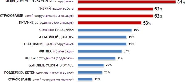 Во время традиционных HR-meeting «Семья и бизнес» онлайн-сервис Recruitnet.ru провел несколько исследований среди директоров и менеджеров по персоналу ведущих российских и зарубежных компаний. Их целью было выявить наиболее важные и актуальные для России способы мотивации персонала, ориентированные на поддержку сотрудников и членов их семей, и значение, которое эти программы оказывают на формирование лояльности к бренду работодателя.