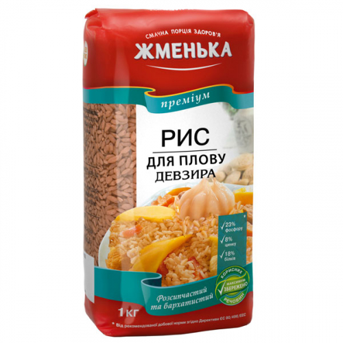 - В рисі Девзира ТМ “Жменька” збережено максимум корисних речовин. Завдяки сучасним технологіям виробництва і бережного лущення в рисі Девзира ТМ «Жменька» збережено максимум корисних речовин: 23% фосфору, 8% цинку, 18% білка.