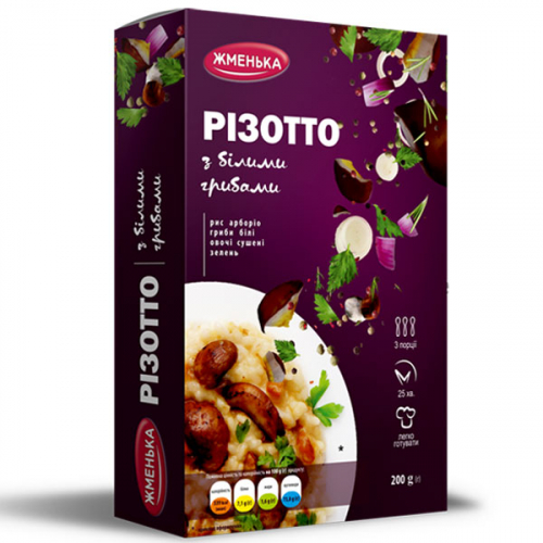 Всі ці проблеми ми вирішили за Вас. Всі необхідні складові вишуканого рецепту відібрані, підготовлені, та зібрані у правильних пропорціях в одній упаковці. Все, що Вам тепер потрібно – це лише одна упаковка різотто з білими грибами ТМ «Жменька» + трішки Вашого часу!!! І справжня, смачна та корисна страва готова!!!