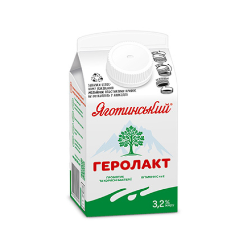 Продукт функціональний харчовий кисломолочний «Геролакт» питний 3,2% жиру ТМ «Яготинське»