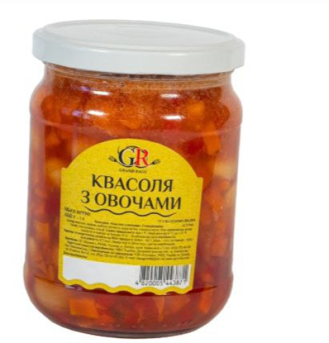 квасоля продовольча, перець солодкий, морква, вода питна, томати свіжі (томатна паста), цукор, сіль, спеції.