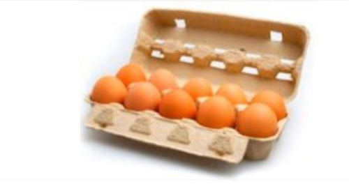 - картонну упаковку для яєць - в традиційній формі виконання (горбкувата підкладка для яєць) - випускають кілька видів горбкуватих підкладок з різними видами осередків для яєць різних категорій за вагою. Компактна та дуже зручна упаковка для переміщення великих партій яєць;