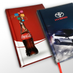 - с печатью индивидуального блока в фирменных цветах с нанесением логотипа и символики компании на страницах;