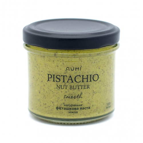 Натуральна ніжна фісташкова паста "AUMI" виготовляється з ядер іранських фісташок тільки вищого сорту. Секрет неповторного смаку і аромату саме в якості використовуваної сировини. У складі пасти тільки 100% горіх фісташки, ніяких барвників, цукру, пальмової олії. Ніжне обсмажування зберігає властивий фісташкам жовтувато-зелений колір і в той же час підкреслює її смак.