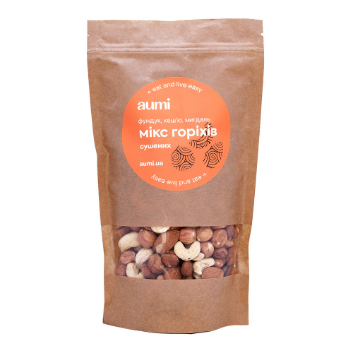 Мікс складається з асорті сирих висушених горіхів в рівних пропорціях за вагою: