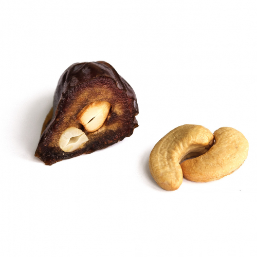 Обожнюємо експериментувати зі смаками. І виявили, що деякі горіхи ну просто ідеально поєднуються з фініками. Тому вирішили запустити серію таких суперсмаколиків. Акуратно виймаємо кісточку і додаємо преміальний смажений горіх кеш'ю преміального сорту, який ми зазвичай використовуємо для виробництва нашої кеш'ю пасти. Смачнюща натуральна цукерка, зручний енергетичний перекус на роботу, у спортзал або подорож.