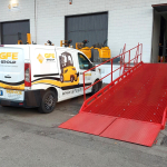 - сходи для водія навантажувача, які дозволяють зійти з рампи на землю;