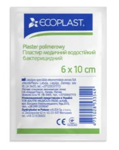 Пластир медичний водостiйкий бактерицидний 6 cm x 10 cm