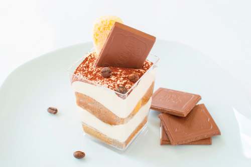 Бисквит «Савоярди», желток яичный, молоко, бренди, смесь для приготовления муссов и суфле, сыр «Маскарпоне», желатин, кофе, какао-порошок.