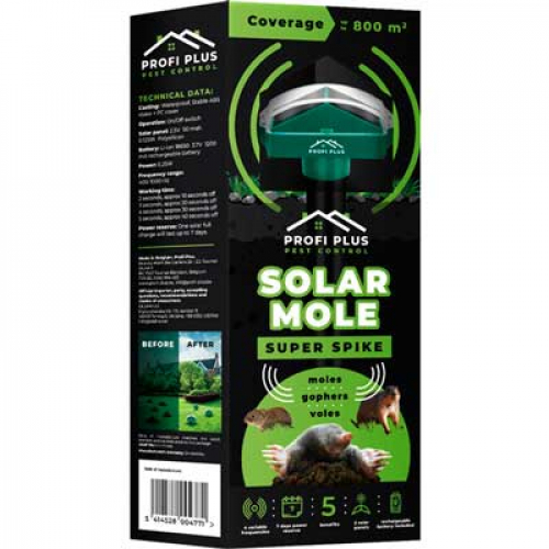 Profi Plus Solar mole Super Spike - це неотруйний та гуманний спосіб відлякування підземних гризунів: кротів, ховрахів, полівок та інших ґрунтових шкідників.