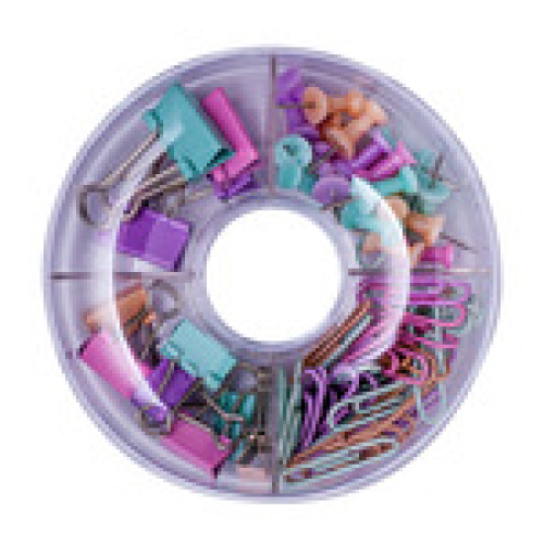 Набір канцелярського приладдя, що включає скріпки, біндери та маленькі кнопки, є необхідним для будь-якого офісу або навчального середовища. Скріпки забезпечують надійне з’єднання документів, не пошкоджуючи їх. Біндери дозволяють акуратно організовувати великі обсяги паперів, що зручно для довготривалого зберігання. Маленькі кнопки зручні для кріплення нотаток або малюнків на дошці чи стіні. Ці канцелярські аксесуари допомагають підтримувати порядок на робочому столі, а їх компактний розмір дозволяє зберігати їх навіть у найменших органайзерах.