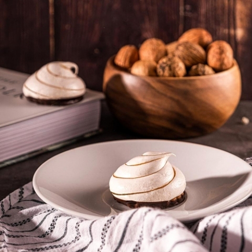 Цукрове печиво з глазурованим дном, оздоблене зефірною масою на агар-агарі з яблучним пюре та желейною масою “Іриска”.
