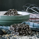 Цукрове печиво з рідкою сиропною начинкою на агар-агарі та пектині, повністю глазуроване та посипане кунжутом.