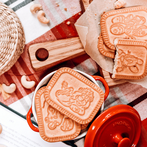 Цукрове печиво з ароматом пряженого молока, на поверхні малюнки з дитячою тематикою. Зафасоване по 4 шт. в поліпропіленову плівку (флоу-пак).