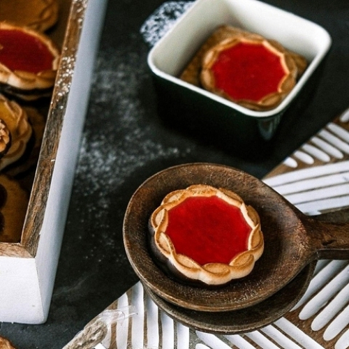 Цукрове печиво з глазурованим дном оздоблене мармеладною масою на пектині з вишневим ароматом. Виготовлено без додавання тваринних жирів, молока та яєць. Рекомендовано до вживання під час посту.