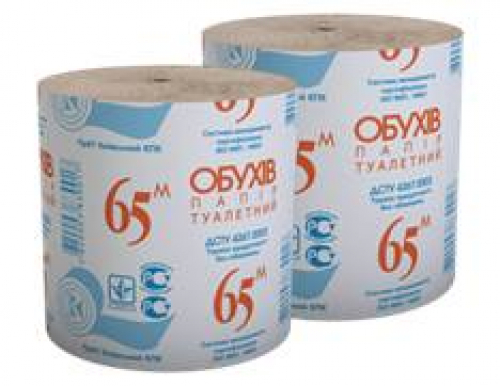 Обухів65 – безгільзовий одношаровий макулатурний туалетний папір. Туалетний папір “Обухів65” – незмінний лідер продажу на ринку України протягом багатьох років. Також популярний в країнах СНД. Є однією з найкращих пропозицій по співвідношенню “ціна-якість” в економ-сегменті.