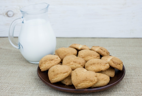 Состав : мука пшеничная в / с, жир растительный «Шортенинг» кондитерский (жир кондитерский рафинированный дезодорированный, масло пальмовое, алеин пальмовый, подсолнечное масло рафинированное дезодорированное), сахарная пудра, вода питьевая, инвертный сироп, яичный порошок, подсолнечное масло, разрыхлитель ( сода пищевая), соль поваренная пищевая, ароматизатор сливочное масло, ароматизатор ванилин.