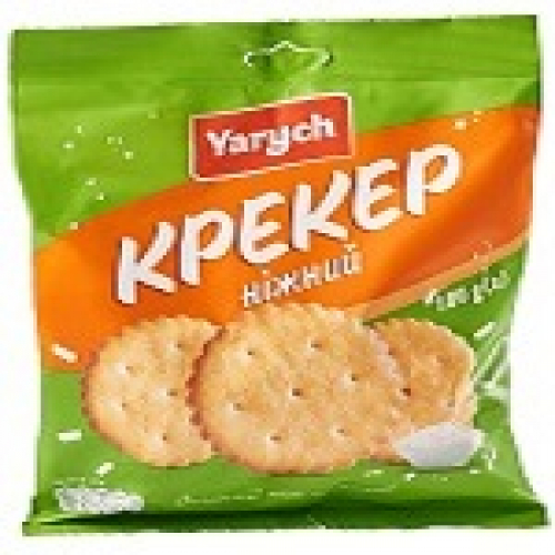 Склад: борошно пшеничне в/с, олія пальмова рафінована вибілена дезодорована, жир кондитерський [олії та жири рослинні рафіновані вибілені дезодоровані: олія пальмова та її фракції в змінних пропорціях, антиоксиданти (E 320, E 321)], цукор, сіль поварена харчова 1,7%, екстракт ячмінно-солодовий, розпушувачі тіста (бікарбонат амонію, бікарбонат натрію), регулятор кислотності (кислота лимонна), агент для обробки борошна (метабісульфіт натрію). Може містити молоко (лактозу). Термін придатності: 12 місяців.