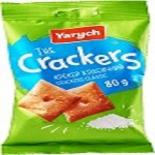Склад: борошно ПШЕНИЧНЕ в/с, олія пальмова рафінована вибілена дезодорована, жир кондитерський [олії та жири рослинні рафіновані вибілені дезодоровані: олія пальмова та її фракції в змінних пропорціях, антиоксиданти (Е 320, Е 321)], глюкозний сироп, сіль поварена харчова 2,3%, цукор, суха МОЛОЧНА сироватка демінералізована, розпушувачі тіста (бікарбонат амонію, бікарбонат натрію), емульгатор (концентрат фосфатидний соняшниковий), агенти для обробки борошна (МЕТАБІСУЛЬФІТ натрію, натрій фосфорнокислий). Термін придатності: 12 місяців.