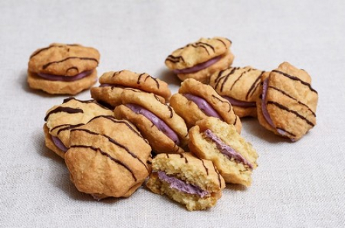 Состав: мука, маргарин, сахар, стружка кокосовая, орех миндальный, глазурь кондитерская, кислота лимонная.