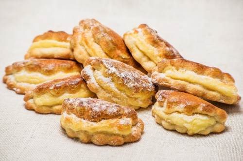 Состав: Мука пшеничная в/с, маргарин, меланж, сахар, ванилин, сыр, сметана.