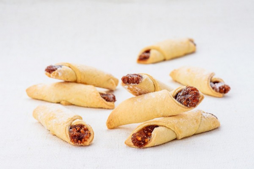 Состав: Мука пшеничная в/с, маргарин молочный, меланж, сахар, дрожжи, сухое молоко, изюм, орехи, повидло, ванилин.