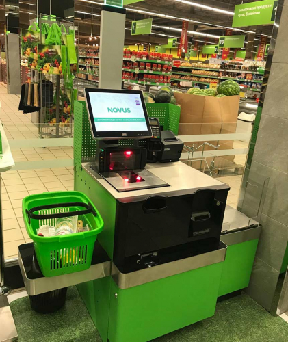 На моноблок устанавливается система учета. Используется для оборудования кассовых узлов торговых предприятий с высоким трафиком посетителей.