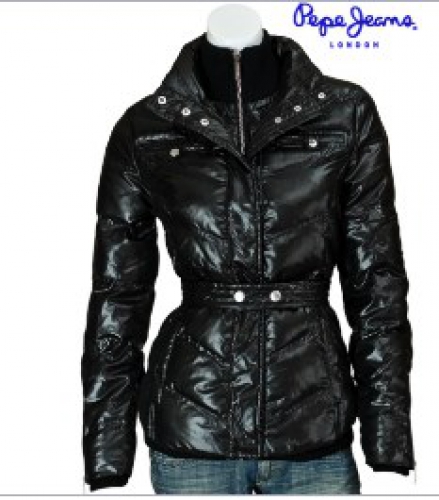 Ïóõîâèê ÷åðíûé Pepe Jeans London Êóðòêà ñ ïîÿñîì è êàïþøîíîì.