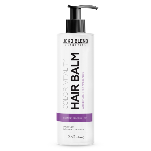 Бальзам Color Vitality Joko Blend™ доглядає за фарбованим волоссям, запобігає передчасному вимиванню кольору. Формула містить кератин, який поліпшує структуру волосся по всій довжині, підвищує міцність локонів та створює на їх поверхі міцну захисну оболонку від нигативного впливу навколишнього середовища. Амінокислоти шовку глибоко проникають у волосся, зволожуючи його зсередини та допомогають позбавитись ламкості. Як результат, волосся зберігає яскравий та інтенсивний колір протягом тривалого часу і виглядає здоровим та сяючим.