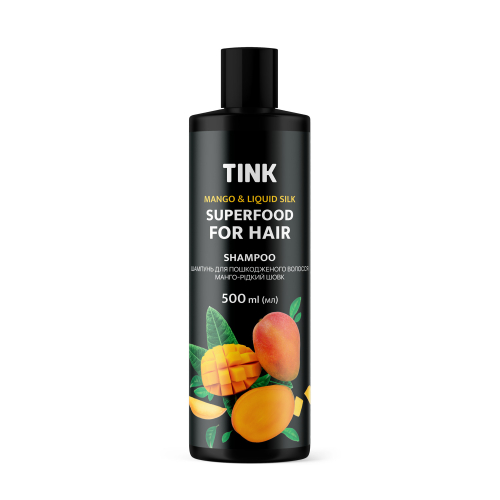 Відновлюючий шампунь серії Superfood for Hair Tink™ створений для пошкодженого волосся. Ретельно очищає волосся та шкіру голови. Формула засобу насичена природними рослинними оліями та екстрактами. Екстракт манго в складі засобу насичує волосся поживними мікроелементами та вітамінами. Рідкий шовк активно зміцнює та глибоко зволожує структуру волосся, відновлює пошкоджені локони, розгладжує і пом'якшує їх. Приємний аромат подарує насолоду під час миття голови та залишить легкий ненав'язливий шлейф. В результаті регулярного застосування шампуня волосся набуває природного блиску та дивовижної гладкості.