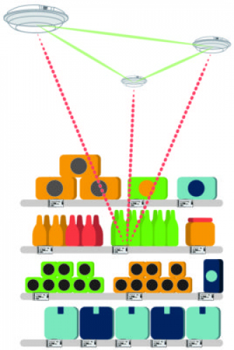 - - Трансиверы устанавливаются на потолке, прямо над полками товаров