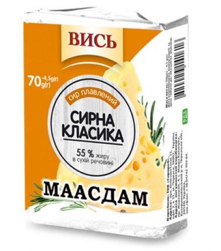 Сир плавлений «Маасдам», 55 % жиру в сухій речовині  ДСТУ 4635:2006.