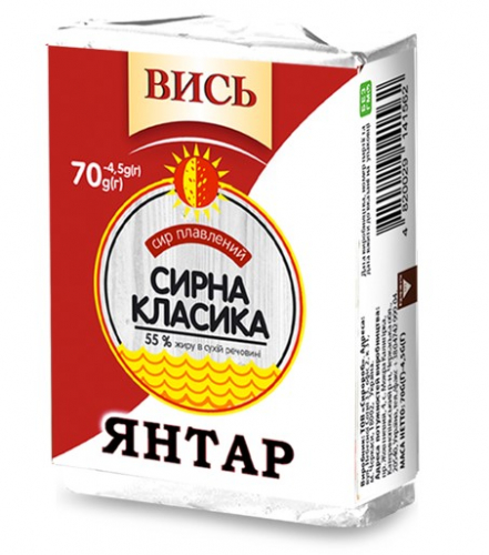 Сир плавлений скибковий «Янтар», 55 % жиру в сухій речовині     ТУ У 14275901.020-97.