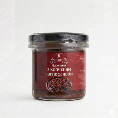 Соус Аджика з копченим чорносливом 150 г ТМ «СОФІКО» - це авторський соус із характером, де традиційна гострота класичної аджики зустрічається з благородною солодкістю підсушених плодів сливи. Завдяки процесу копчення чорносливу, соус набуває глибокого аромату «з димком», що робить його унікальним серед інших приправ.