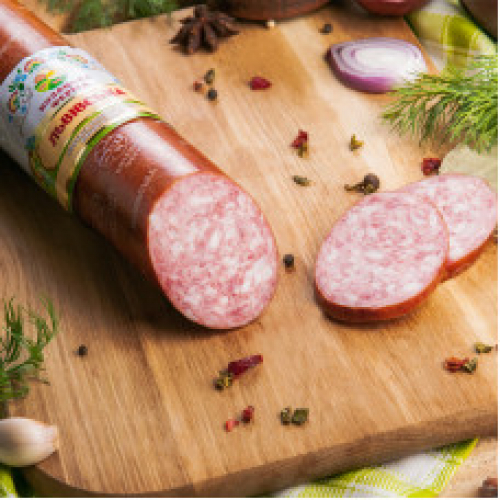 "ЛЬВІВСЬКА" КОВБАСА НАПІВКОПЧЕНА ВИЩОГО ГАТУНКУ Виробник: Козацька ферма 263.52 ₴