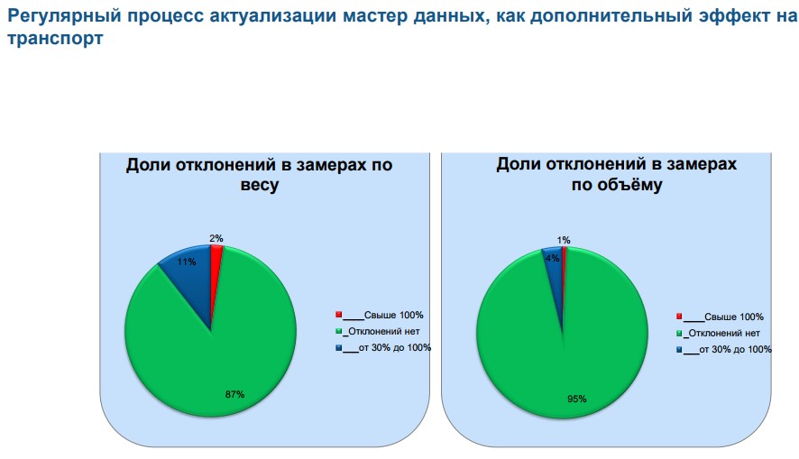 Кроме того, компания контролирует процесс внесения лог-данных и требует, чтобы они были очень точные, поскольку отклонения влияют на планирование логистики.