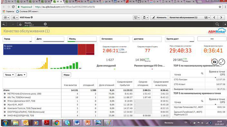 Кроме того, программа представляет аналитику за различные периоды времени. В качестве примера эксперт привела данные за апрель: всего совершено 20,5 тысяч визитов с грузом к клиентам, из них 1600 визитов – с опозданием, 14 – раньше времени (до указанного временного окна).