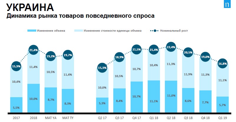 В Украине цены на товары повседневного спроса выросли на 11,1%, а объемы продаж увеличились на 5,7% соответственно, в результате общие расходы украинцев на товары повседневного спроса выросли на 16,8%.