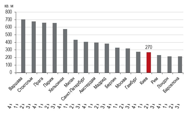 Сравнение обеспеченности торговыми площадями в городах Европы
