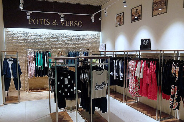 Магазин европейского бренда Potis&Verso предлагает женскую и молодежную коллекции. При пошиве одежды Potis&Verso используются ткани и фурнитура лучших специализированных предприятий Италии, Франции, Испании, Германии и Японии, при этом многие материалы делаются эксклюзивно по заказу компании.