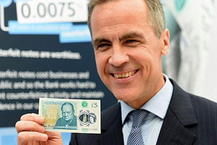 Управляющий Банка Англии Марк Карни продемонстрировал новую пятифунтовую банкноту с изображением бывшего премьер-министра Великобритании Уинстона Черчилля на аверсе, сообщает The Guardian. Эта купюра стала первой пластиковой в истории денежного обращения на территории Англии и Уэльса.